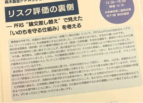 11月26日、高木基金PFASプロジェクト市民フォーラム院内集会に出席。