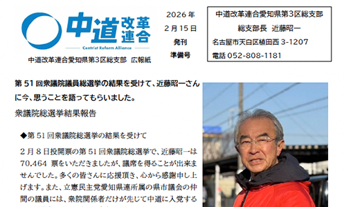 巻頭のご挨拶から2ヶ月間の様々な問題点や国会内外での主な活動報告などをご紹介いたします。