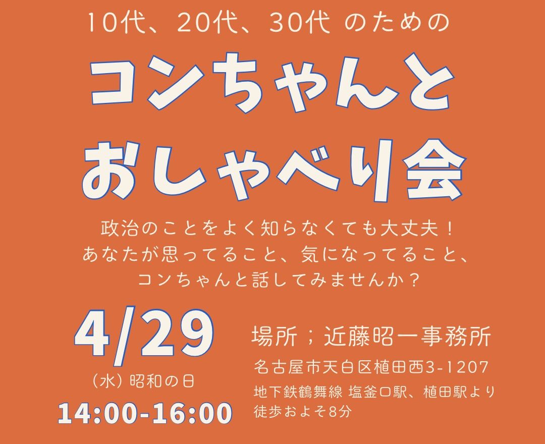 コンちゃんとおしゃべり会 4月29日(水・祝)14時から