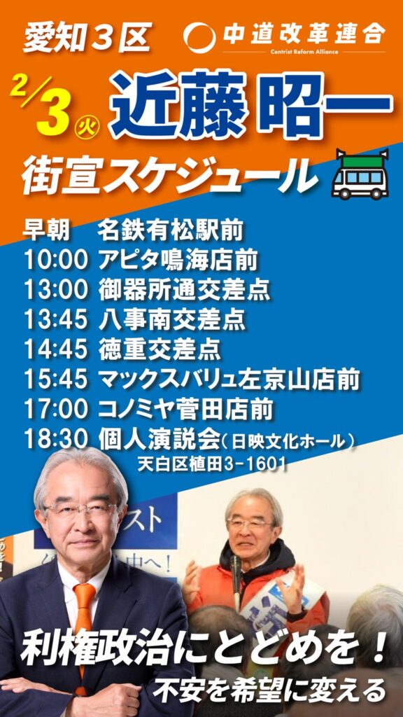 個人演説会開催します。 18:30~です。