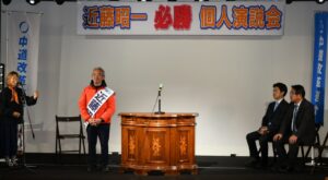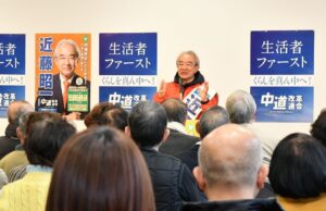 近藤昭一候補は、今回の選挙が、争点がはっきりしない中ではありますが、今後の日本の針路を決めるのにとても重要であることを訴えました。