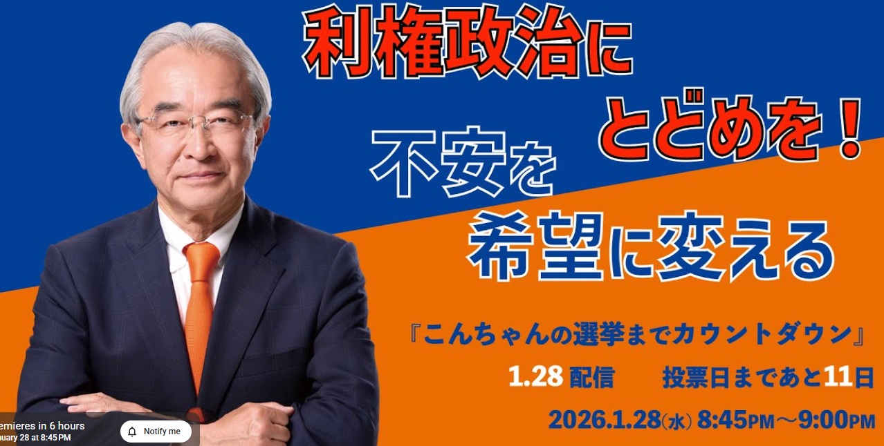 1月29日20:45~こんちゃんの選挙までカウントダウンー3日目 本日のゲストは!