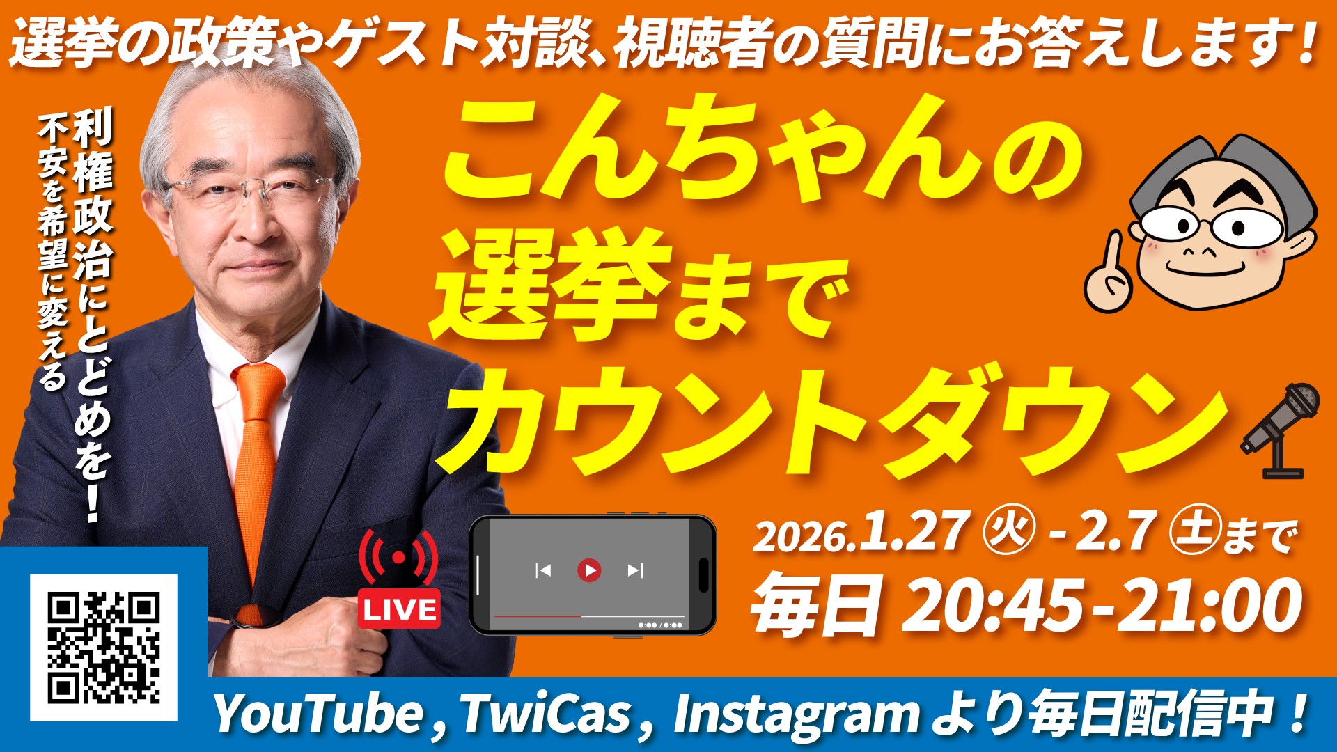 こんちゃんの選挙までカウントダウン 配信のお知らせ